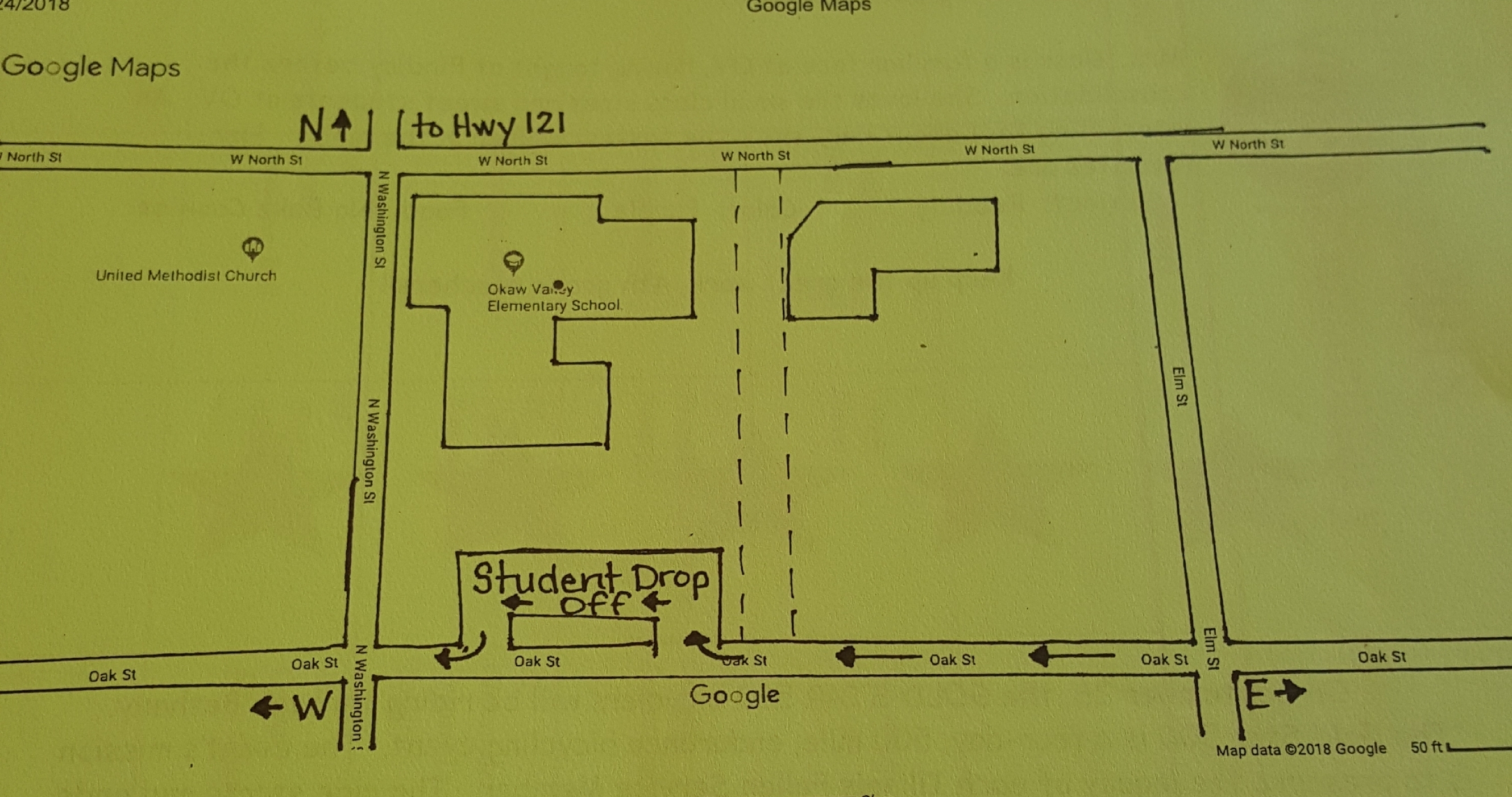 Following a conversation with the Bethany Police and a concern for our student's safety, we are implementing a new drop off procedure immediately. Student's should be dropped off on the south side of the building with cars using the gravel drive. Student's will proceed to the playground area. They can then enter through the East doors if they are eating breakfast or during inclement weather, otherwise they can stay on the playground to play.